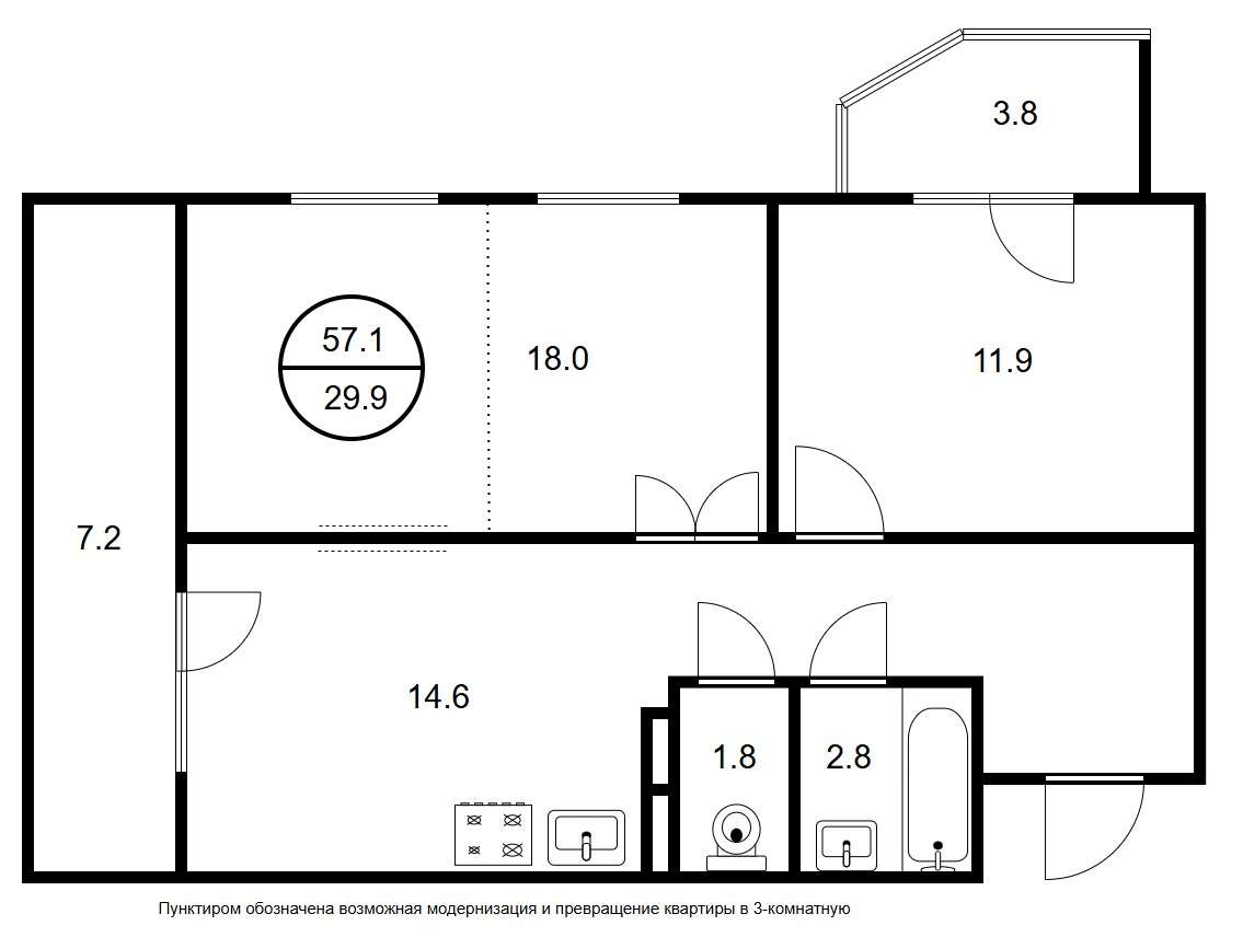 Стандартный план для продажи типовых квартир до 100 квадратных метров